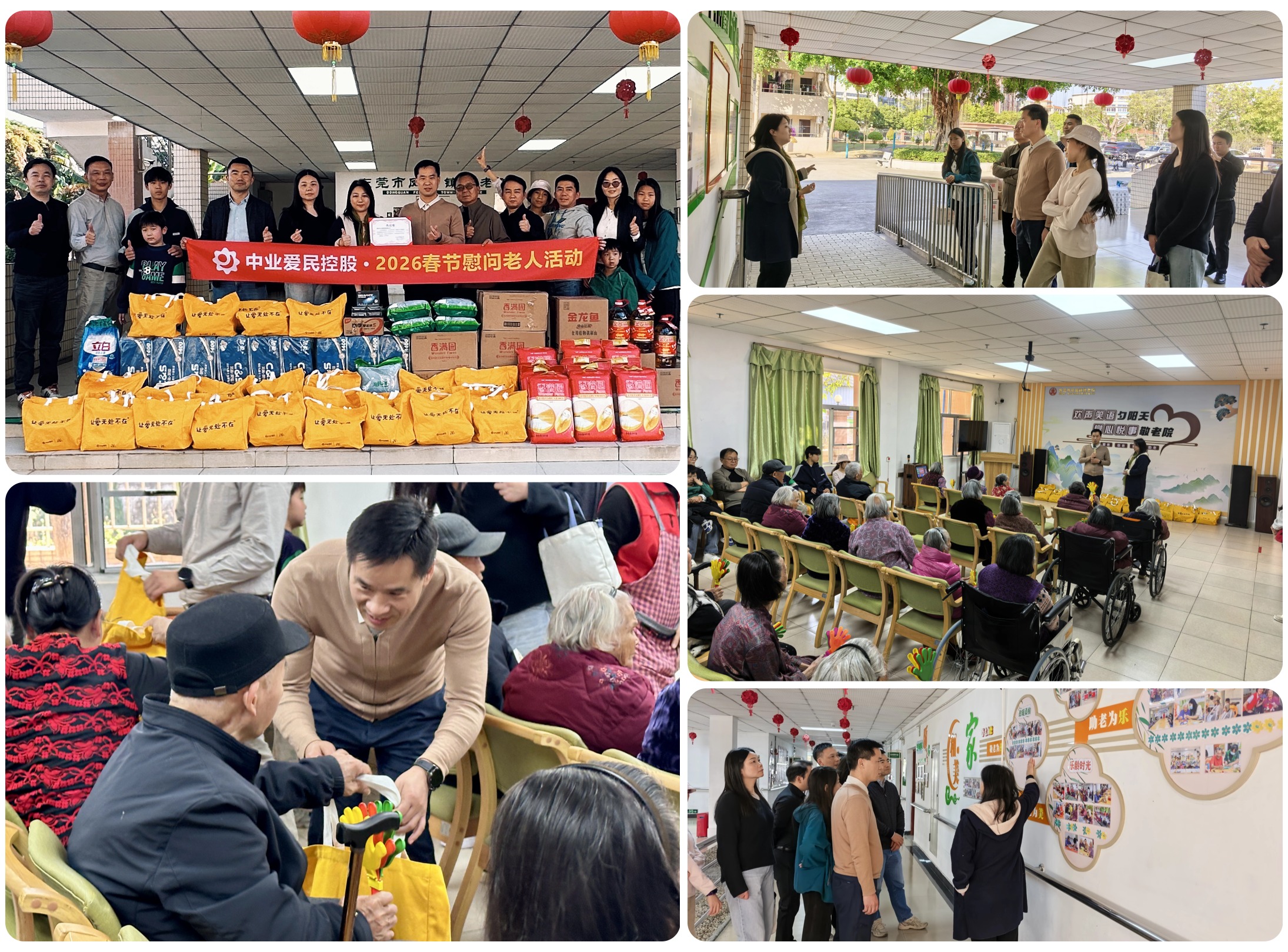 为弘扬中华民族尊老、爱老、敬老、助老的传统美德,积极履行企业社会责任,传递社会正能量,中业爱民控股于2026年1月25日下午,组织开展了“爱心之旅——走进东莞市凤岗镇敬老院”主题公益活动。此次活动以“中业爱民控股·2026春节慰问老人活动”为主题,旨在为老人们送去春节前的温暖与关怀,践行企业“无处不在”的使命。