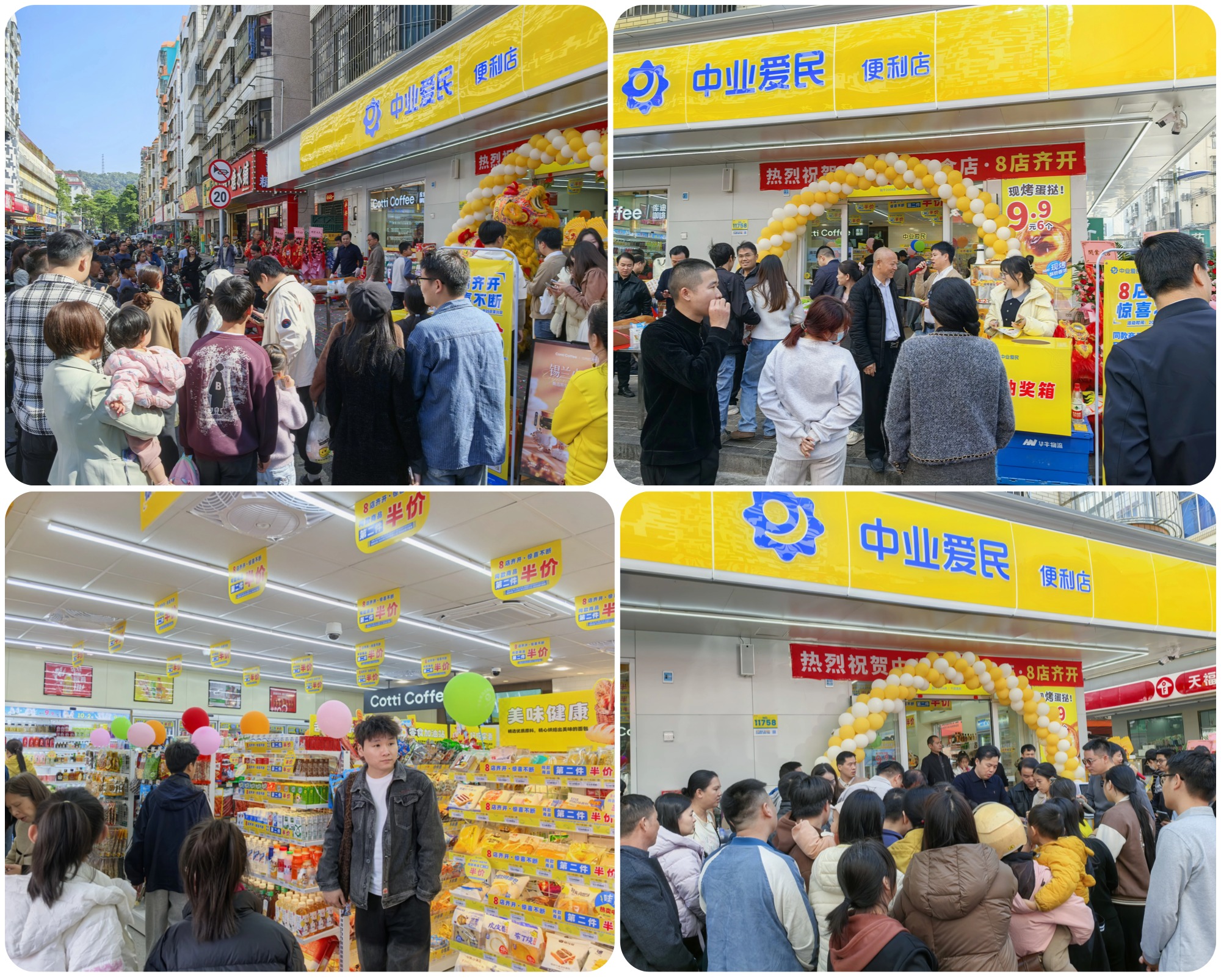 此次同步开业的八家门店,精准布局核心商圈与社区生活圈,延续中业爱民“让爱无处不在”的品牌印记,涵盖日常零售、鲜食供应、便民服务等多元场景。门店内,悦鲜活鲜奶、特色烤肠等爆款单品悉数亮相,精选SKU覆盖居民一日三餐及生活刚需,搭配科学的货架陈列与高效的收银系统,为消费者打造舒适省心的购物体验。活动期间,各门店同步推出全场商品第二件半价等福利活动,吸引大批顾客进店体验,开业即迎来客流高峰,彰显了品牌强大的市场号召力。